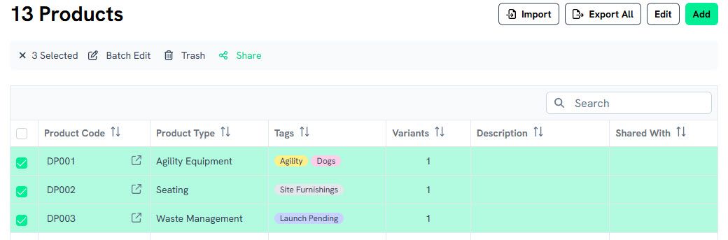 Batch Sharing for Products and Variants: Easily share multiple items at once with our new bulk sharing feature in both Products and Variants tables.