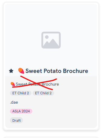 Remove duplicate asset name from grey card section in gallery view.
