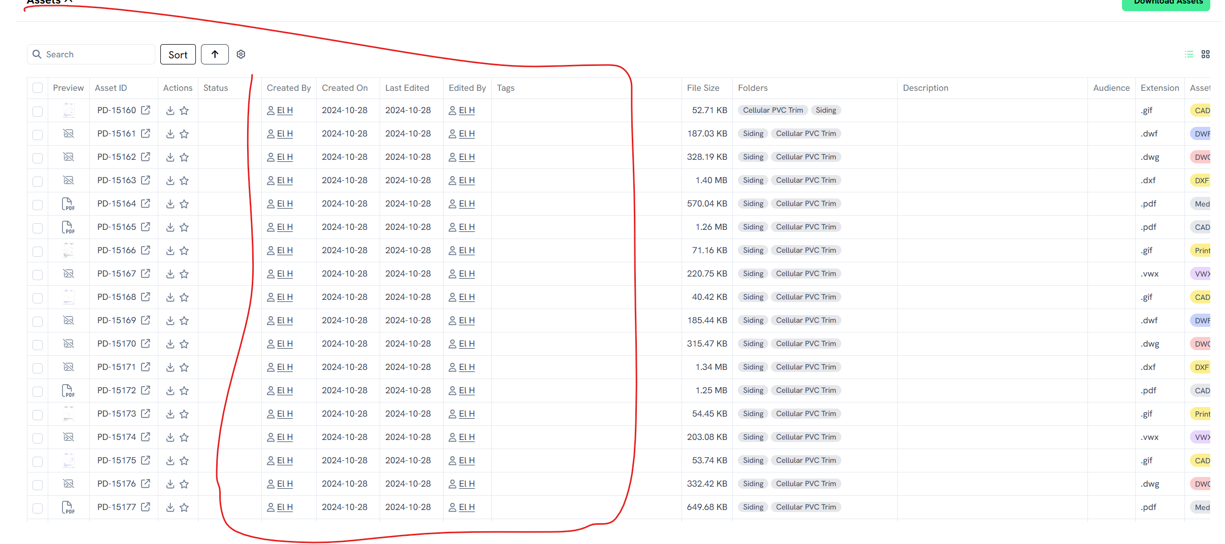The changes made to update the fields in the table and gallery view were not made to the folders pages.