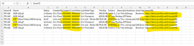 Items with emojis are being added to the download asset data sheet as weird characters.