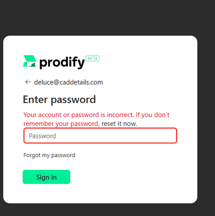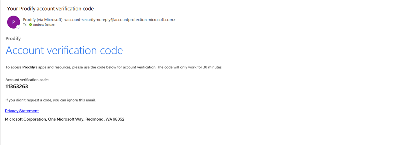 2) Email that comes with reset: There is curently no branding on the email and it looks like Microsoft is sending it not Prodify. This should be branded (like a regular password reset). Also not sure how this would be intrepretted by a non-Microsoft user.