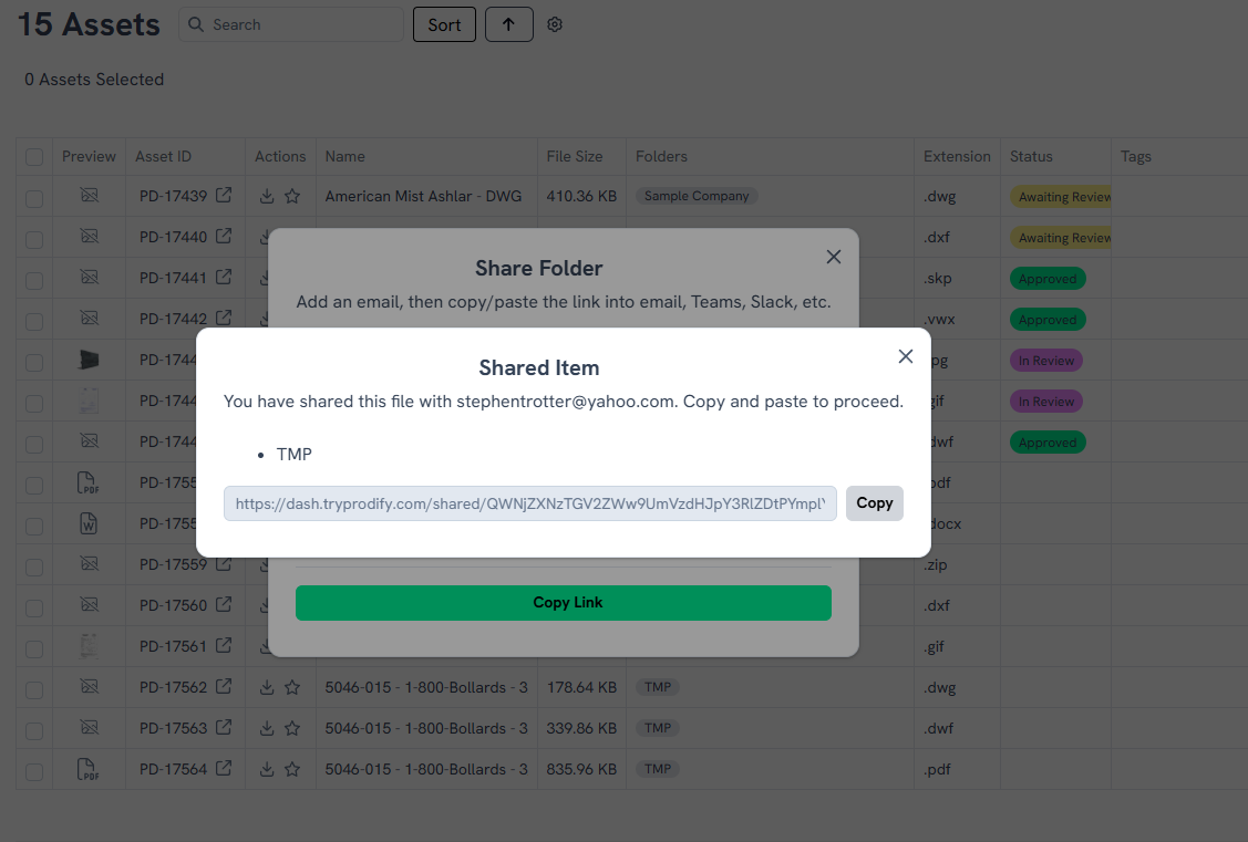 Message is contradicting. It says the flies have been shared, but then prompts to copy/paste to proceed. Recommend adding additional context and more instructions.