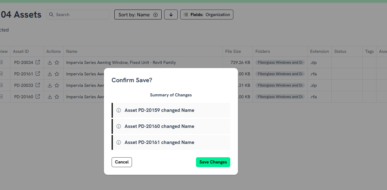 When changes are saved, can we show the actual changes vs writing out that the Asset Name changed?